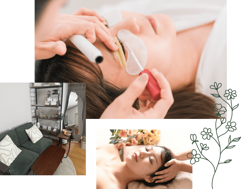 ドライヘッドスパやデコルテオイルケアなどの癒しメニューもあり、疲れをリセットしながらリラックスできる時間をお過ごしいただけます。